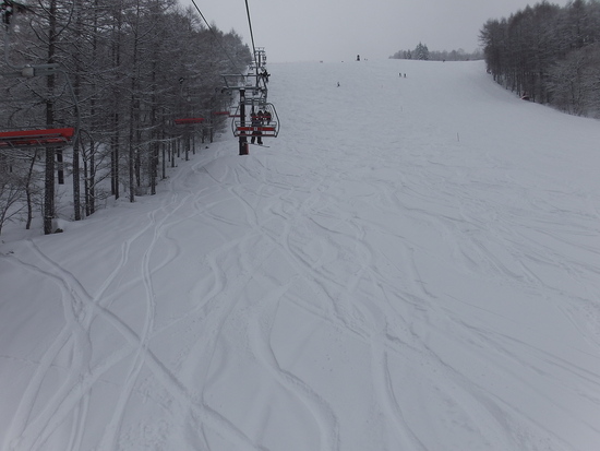 当日は強風の為第4ペアA線が運休となってしまい、キャニオン、スノートレイル、フリークの未圧雪コースが滑れず残念でした。