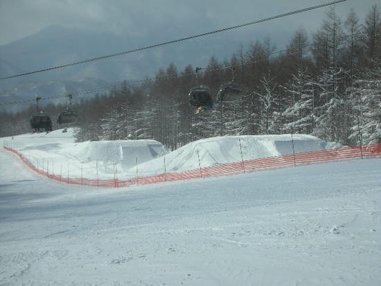 リフトを降りると、雪ダルマがお迎え。 大きなウェーブがありました。 全般的に、緩斜面が多く広くて、初級者でも楽しめます。