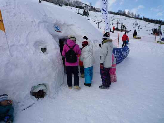 今シーズンから小学生以下リフト券無料になったせいか、3連休ということもあってゲレンデはファミリースキーヤーで大混雑でした。リフトに乗るのも行列ができて、20年以上前の苗場を見ているような感じでした。かなり込んでいたので、ちびっこ宝探しに参加したり、かまくらの中に入って遊んだりして、子供達は楽しそうでした。お昼は大好きなカレーを食べてご機嫌でした。大混雑の苗場であまり滑れなかったり、帰りも大渋滞にはまり帰宅は夜中になってしまったりと大変疲れましたが、子供たちが楽しんでいたので、またファミリースキーに連れて行ってあげようと思います。