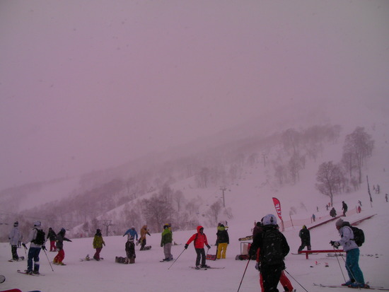 かぐら上部では雪が降っていました。いつもならTシャツ姿も見られる時期なのですが、軽装組はとっても寒そうでした。