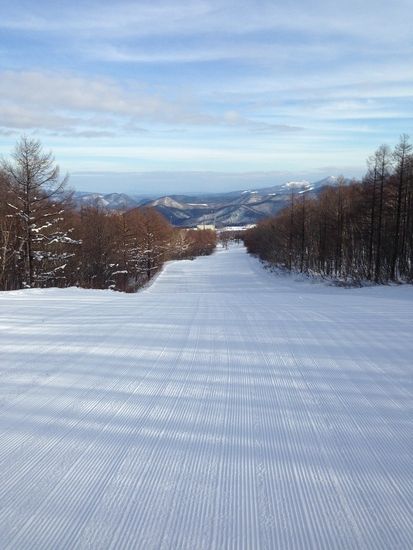 圧雪バーンは最高に滑り易い硬さで、最高にキレイです。