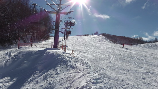 今日から上部のクワッドが運行開始でパノラマコースが滑れました。