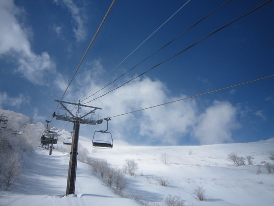 当日は快晴。コースもほぼフルオープンで、快適な1日を満喫できました。初級者から上級者まで楽しめるスキー場だと思います。それから山頂付近では樹氷が見られます。つまりけっこう「寒い」スキー場なのかも…。