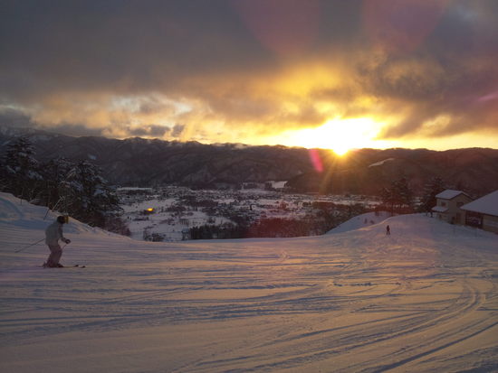 普通でも7時半からの営業なので、充分早いと感じるのですが、アーリーモーニングと呼ばれる営業時間前の特別営業は、もう最高でした! ゲレンデで迎えた夜明け、幅も長さも桁違いなリーゼンコースを大回りできる気持ち良さは何にも換えがたい素敵な経験でした。