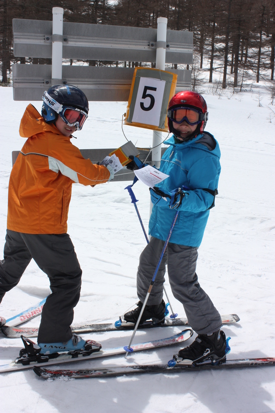 この時期仕方ないですが、昨日までの暖かさのから、寒気が下がって一気に融けた雪が固まった様子で、ガリガリのゲレンデ。おまけに昨夜だか今朝に振った降雪がふきだまり。寒いし、2時間ちょっといて退散。スタンプラリーは結構楽しかったようで子供たちは楽しんでました。スタッフの対応もGOOD。