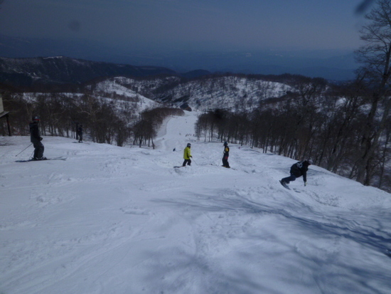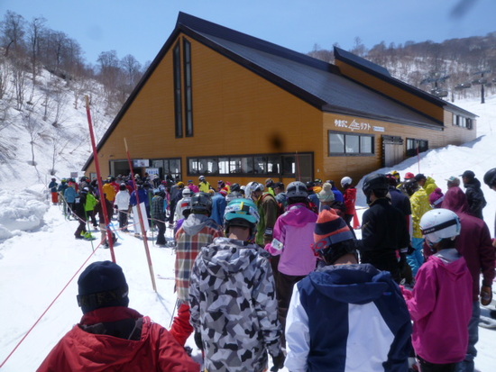 8:00スタート。まずは山頂を目指す。朝一の4本くらいはバーンも固く、カカカカ音は立つが滑りやすい。周りの競技系に負けじとテレマークでカービングターンでかっ飛ばす。しかし、気温の上昇とともにすぐにジャバ雪に。ゲレンデはスキーヤーも多いので11:00になるとどこもコブ。写真はやまびこコース。やまびこフォー2リフトはほとんど待ち時間も無いので、時間まで滑りこむ。テレマーカも数人発見。リフトで一緒になったテレマーカは奈良県から来たとのこと。G.W.じゃなければ絶対ここまで来ないと言っていた。そりゃそうだ。