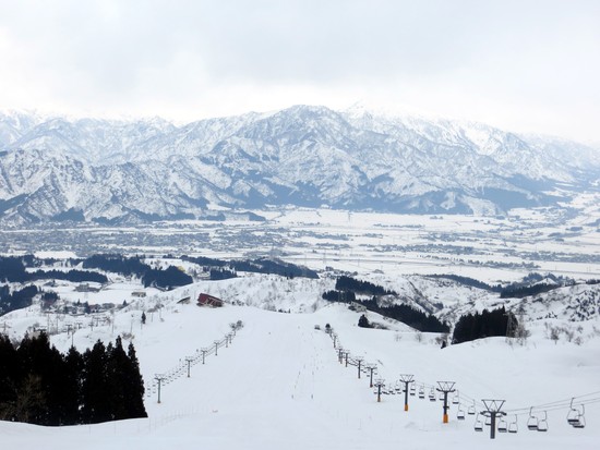 天候がイマイチでしたが、晴れていればスキー場トップからの眺めは素晴らしいでしょう