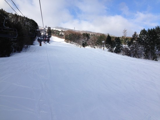 寒波が少し落ち着いて、日中は気温も上がりポカポカ陽気なお天気でした。お客さんも少なく、リフト待ちもほとんどなくて、ゲレンデコンディションも最高でした。
