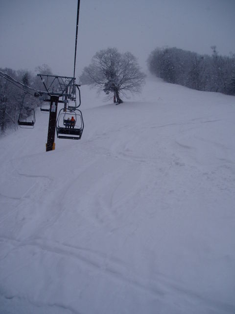 下の方のゲレンデは若干硬い上のパウダーでしたが上のコースまで行くと全体がパウダーで雪質は最高でした。