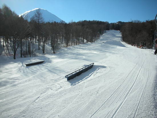 ふじてんのスノーパークって、ファミリー向けと想像しましたが、行ってみたら結構本格的でビックリしました。リフト沿いのコースなので、目立ちますね。