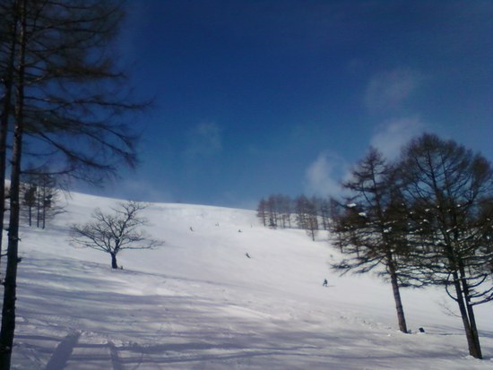 エコーバレーは、八ヶ岳・蓼科エリアの中では、広々としたゲレンデ(写真)のある気持ちの良いスキー場です。ポール好きな人には、今年からオープンした本格的なレーシングバーン(1日1,000円)もおすすめです。