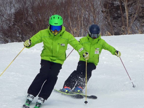 スキーは4才から、スノーボードは6才から大人の方まで。丁寧なレッスンを行っています。 当校では、初心者のスキーレッスンに、特製の練習器具を使いますので、マンツーマンレッスンの場合、ほぼ1単位でリフトを使って、緩斜面でのスピードコントロール滑走&ストップができるようになります。滑れるようになったら、積極的にリフトを利用して、楽しく長い距離を滑ります。英語レッスンにも対応します。スキーJIT検定(ジュニア国際技術検定)を随時行っています。(希望により講習内検定も可)